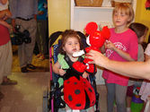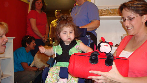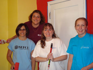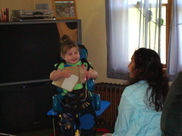 Once the room was complete, family, friends, and volunteers gathered to celebrate. We have never seen Anna so enthusiastic and excited as she was when her mother wheeled her into her new room. It was unbelievable! She looked around, smiled, and was mesmerized by the room colors of yellow, red, white and black. Many close family and friends said that the new room was PERFECT for her, "it fit her to a tee!" Thank you so much to all of the volunteers that made a difference in the life of Anna and her family!