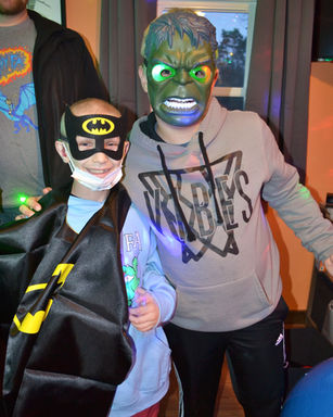 The boys share a room, so coming home to their new bedroom was a heartwarming surprise for both of them. Tiernan is an incredibly active child who has found even more energy as his blood cell counts have increased since the transplant. He loves to dance and have family dance parties. The boys also both love all superheroes. The project team decided to combine the two into a Superhero Dance Party room. It features light-up superhero decor, a disco ball, and sound reactive lights. We also included a smart TV and Xbox Kinect so the boys can listen to music and play video games together.